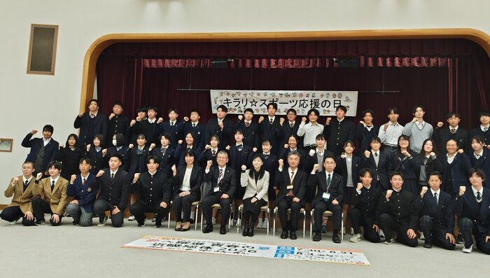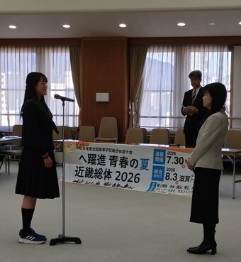 令和8年3月12日に県庁東館大会議室で、3月に行われる全国大会の激励会が行われました。 激励会開催にあたって、15競技44名が参加してくれました。 岸本副知事や北川教育次長、中村文化スポーツ部長・県スポーツ協会 中嶋理事長にも来ていただきました。 各競技ごとにパフォーマンスや決意表明を行い、選手を代表してローイング競技 冨田選手が決意の言葉を述べました。
