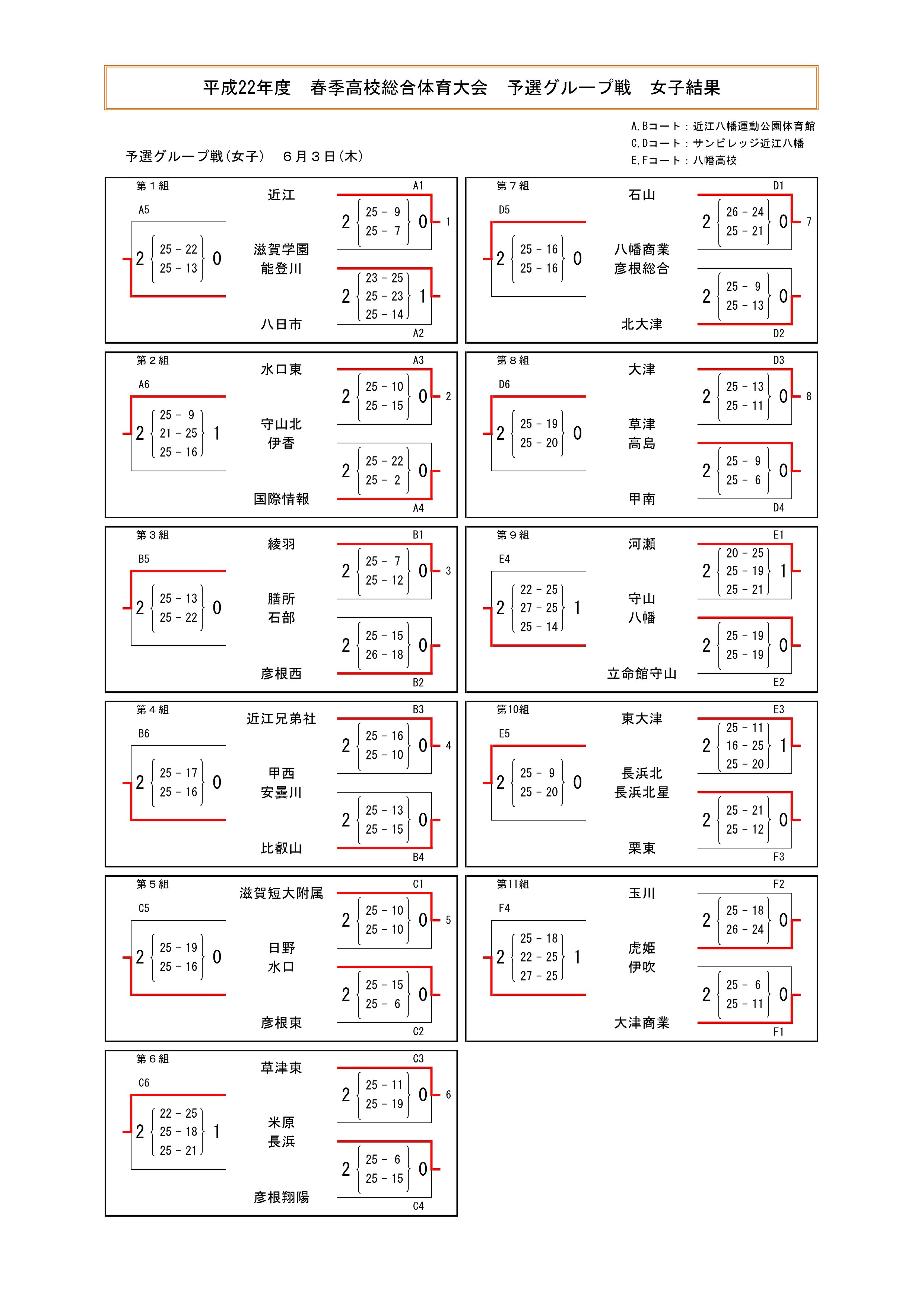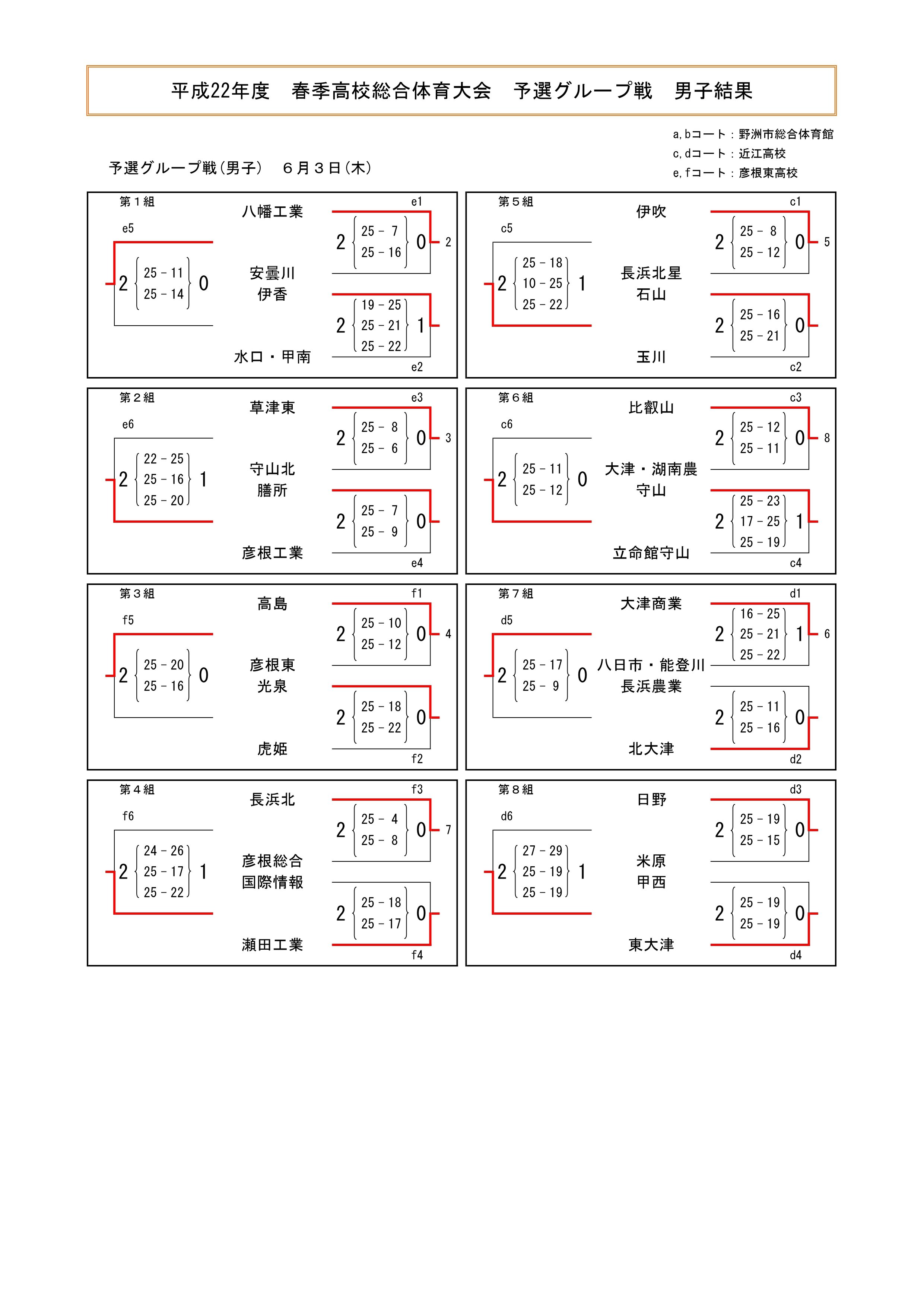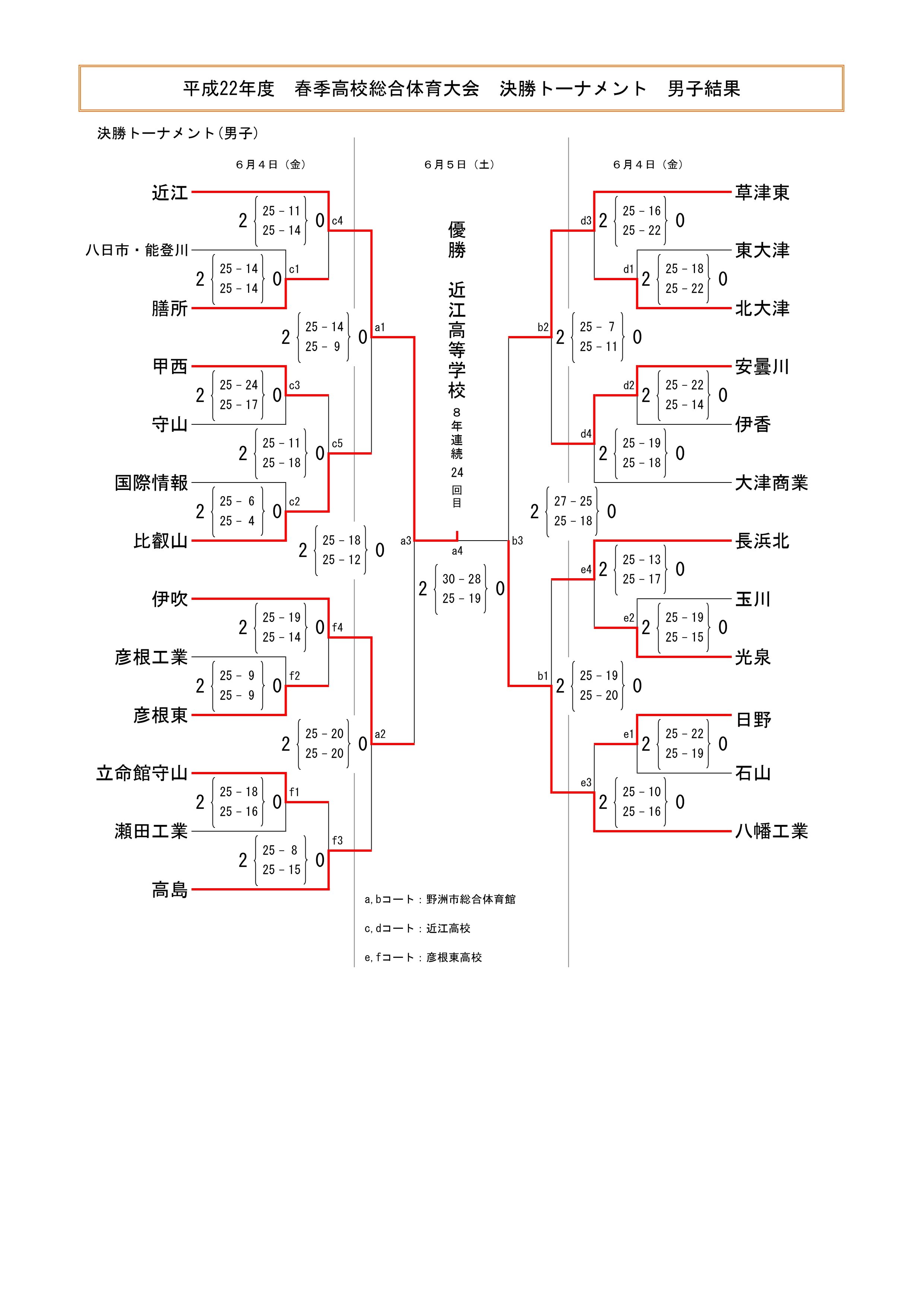平成22年度 滋賀県高等学校春季総合体育大会 結果