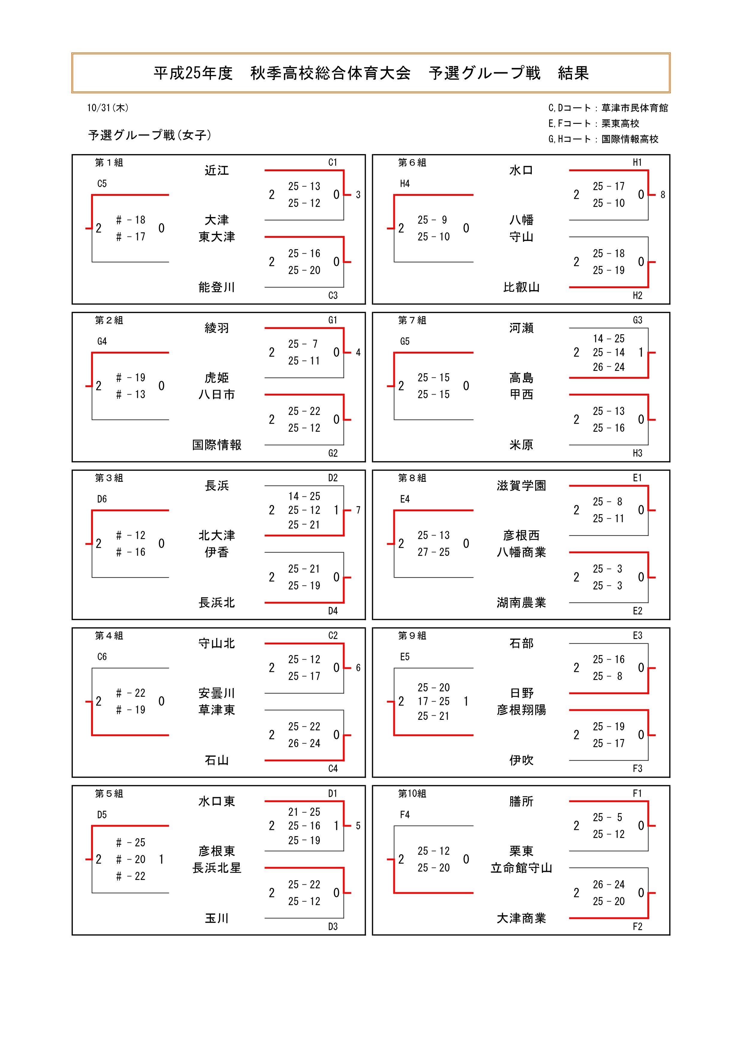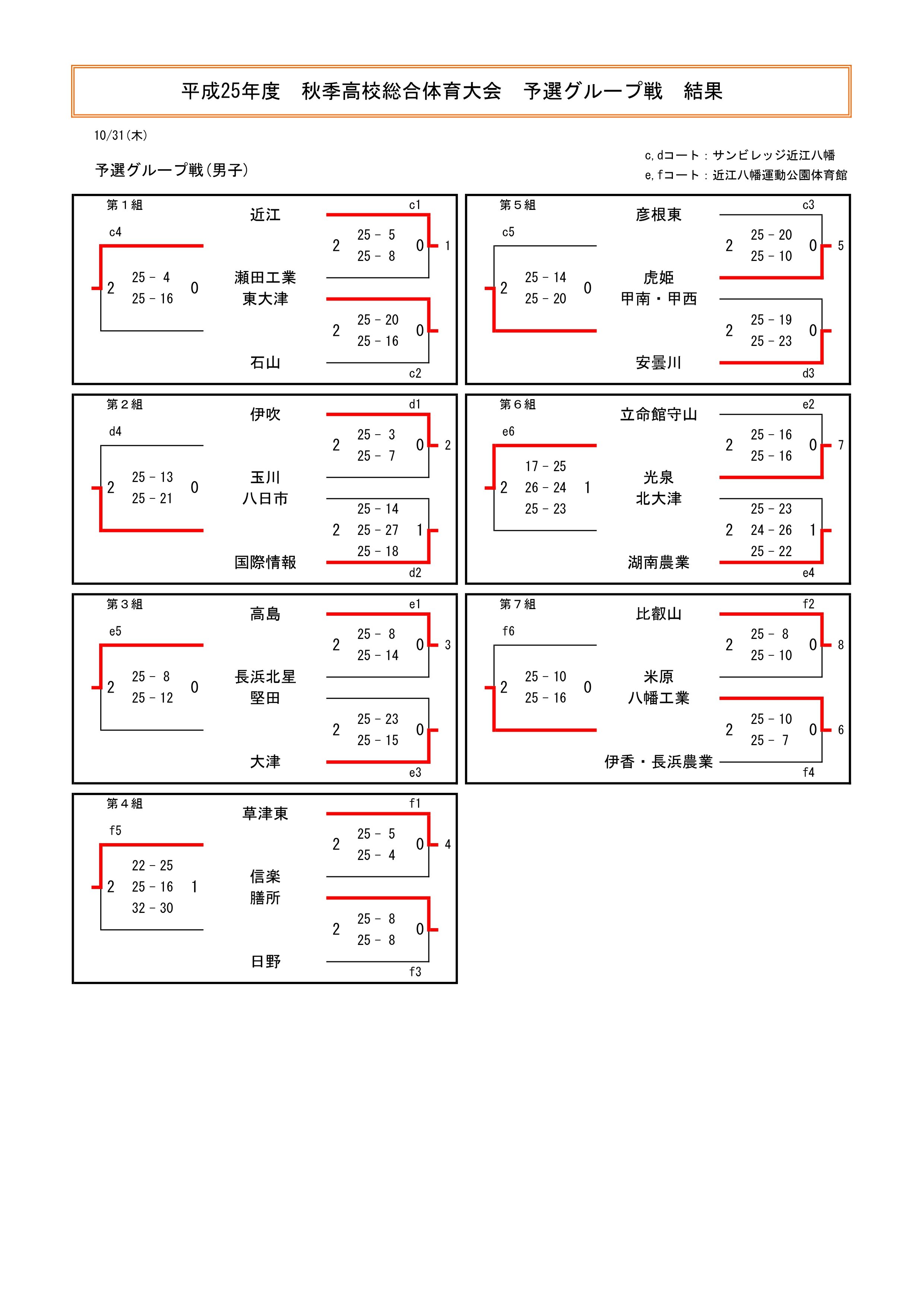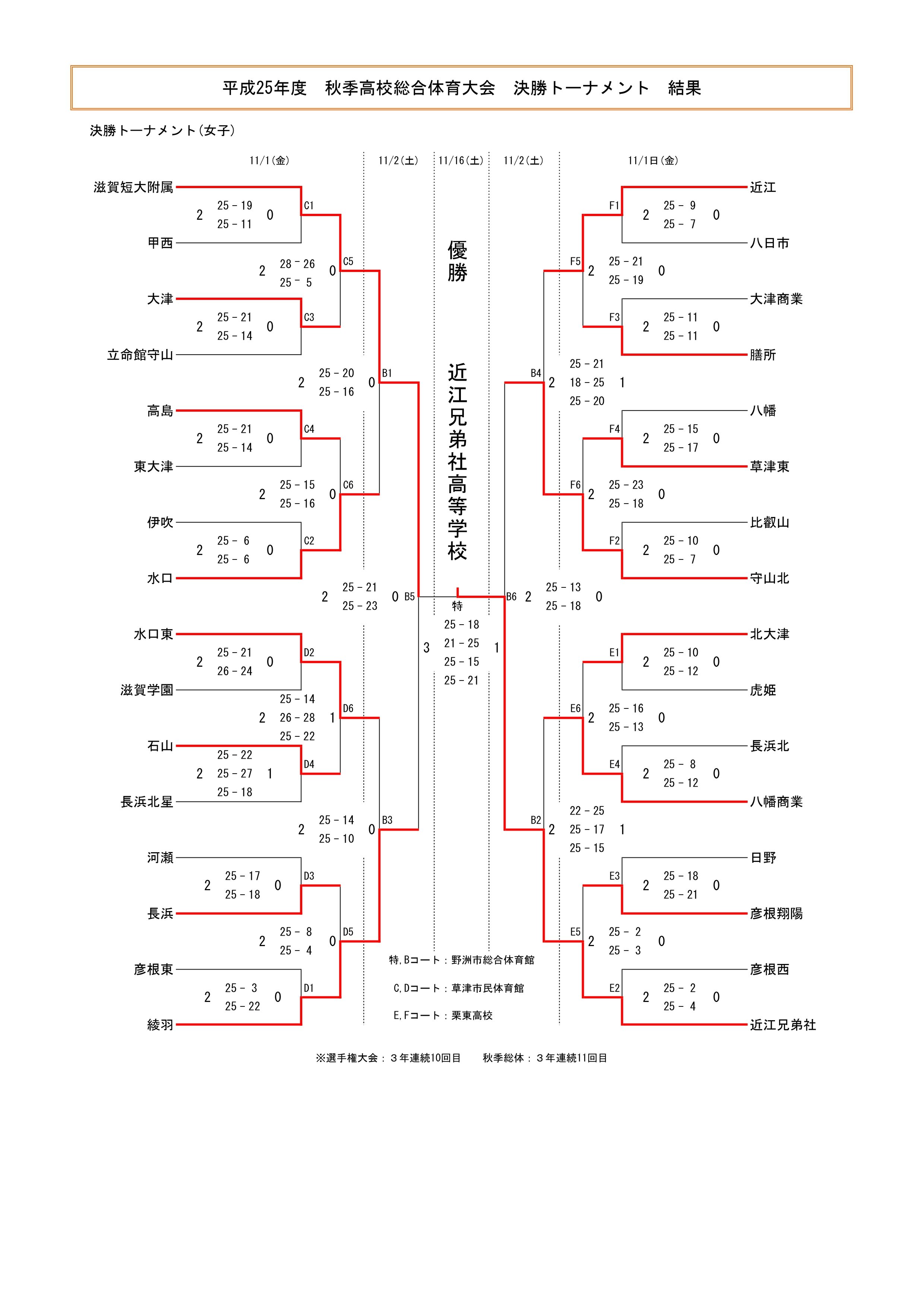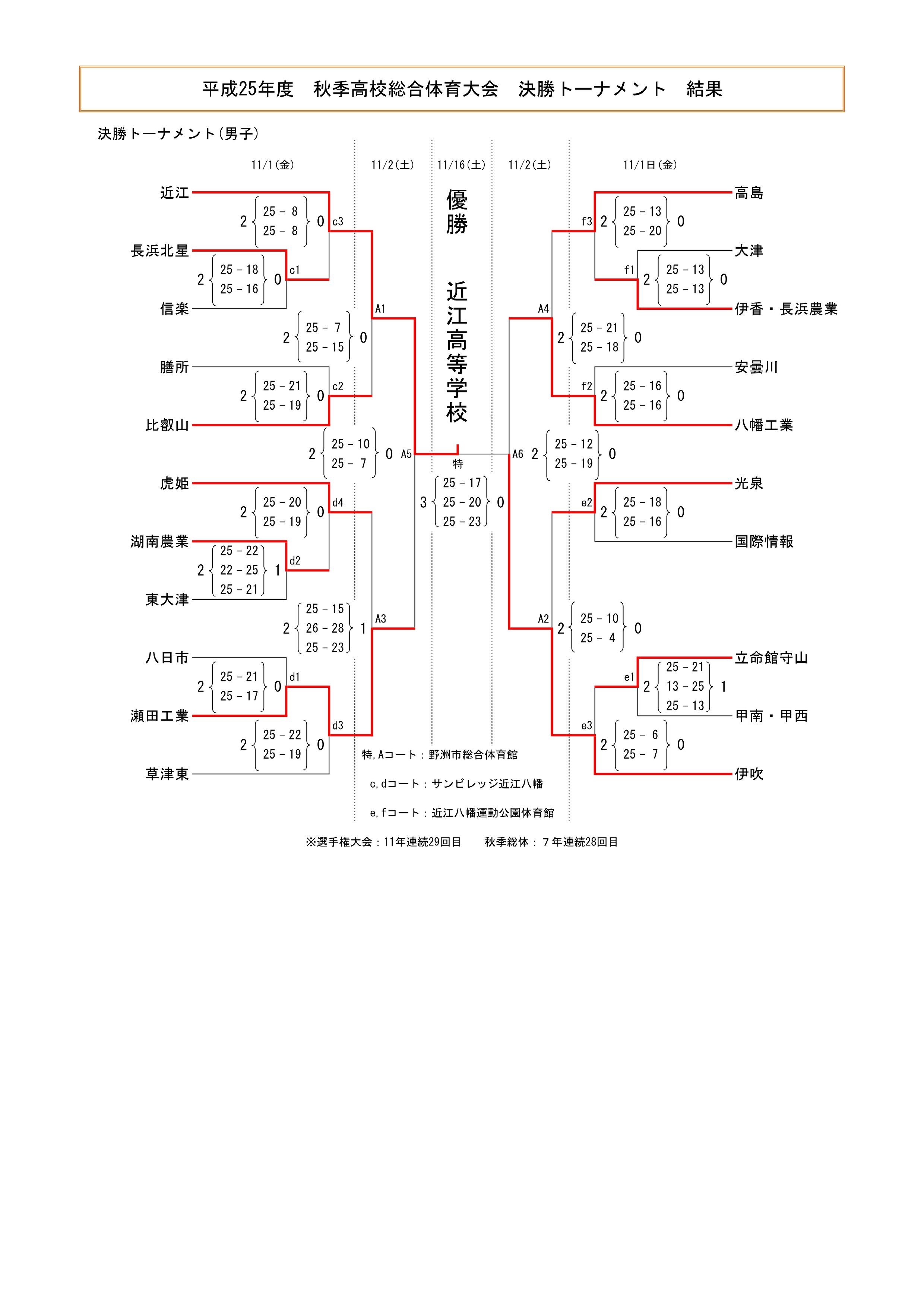 平成25年度 滋賀県高等学校秋季総合体育大会 結果