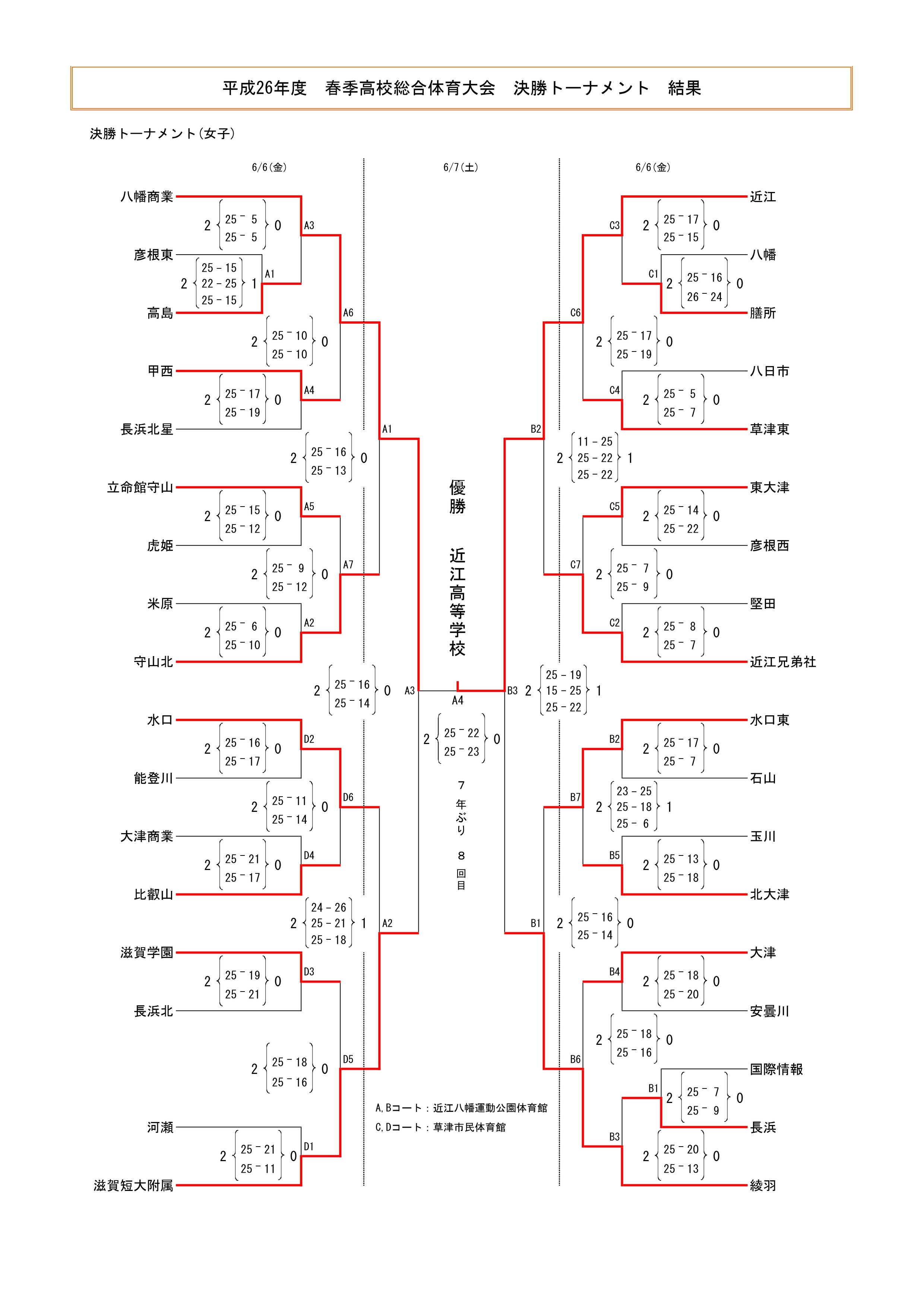 平成26年度 滋賀県高等学校春季総合体育大会 結果