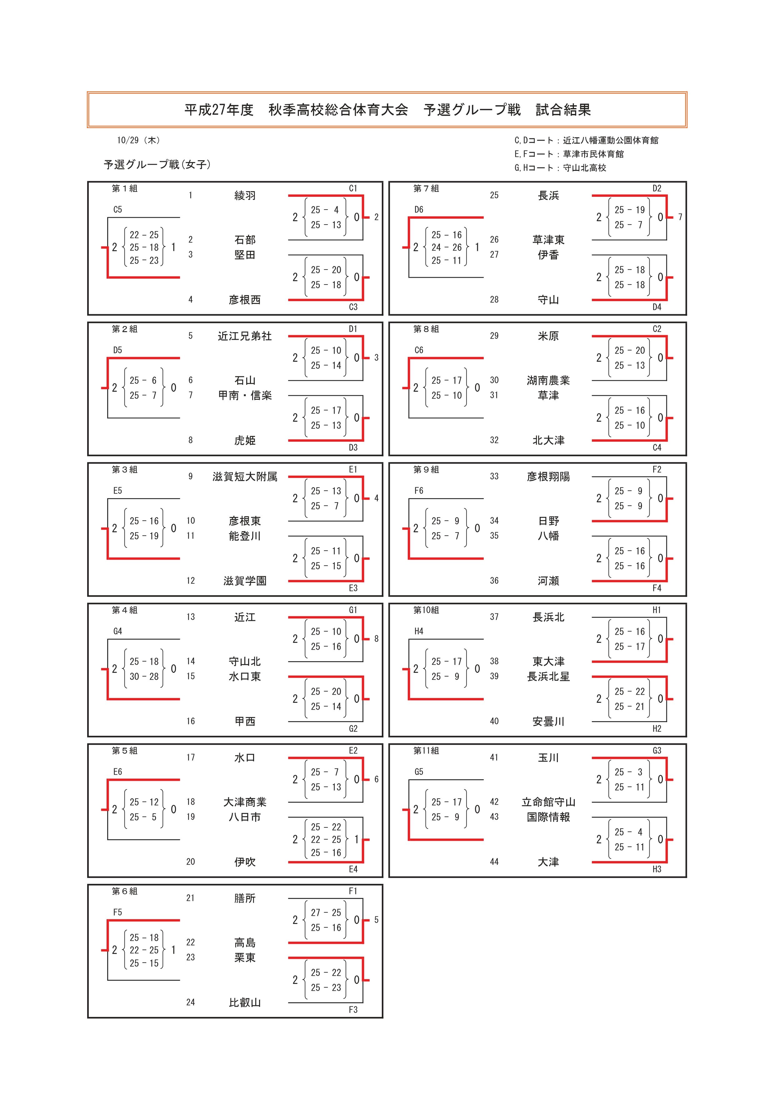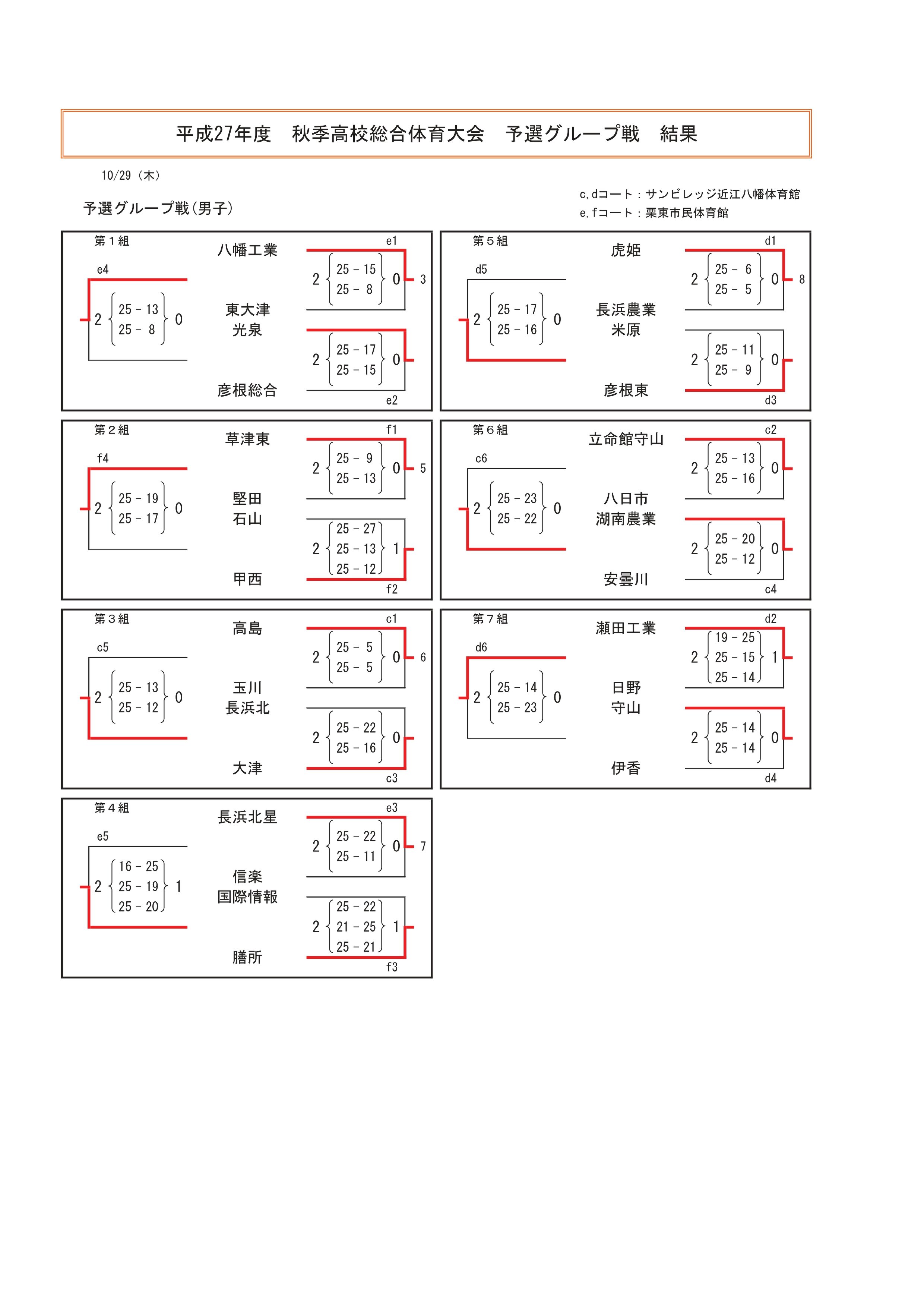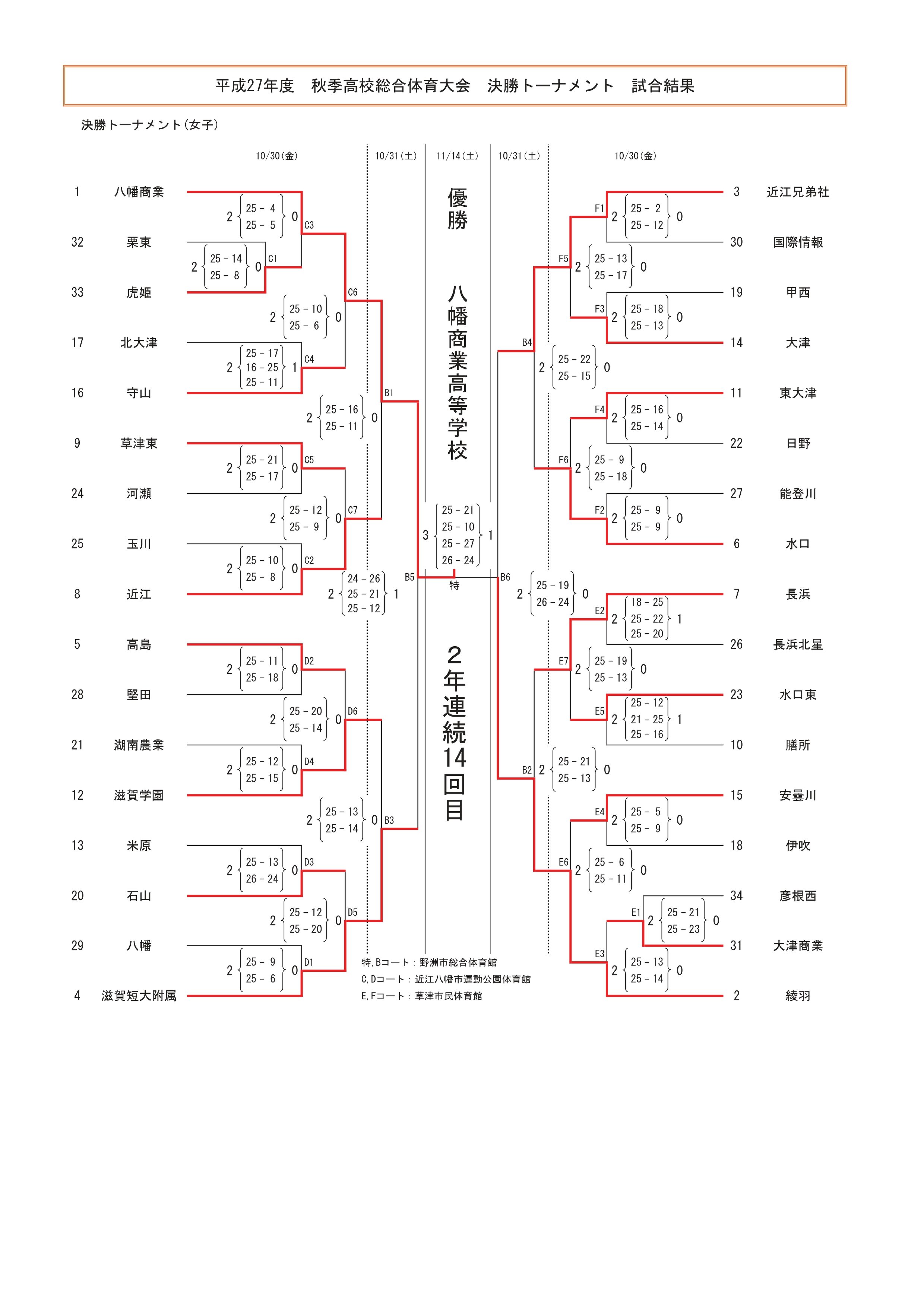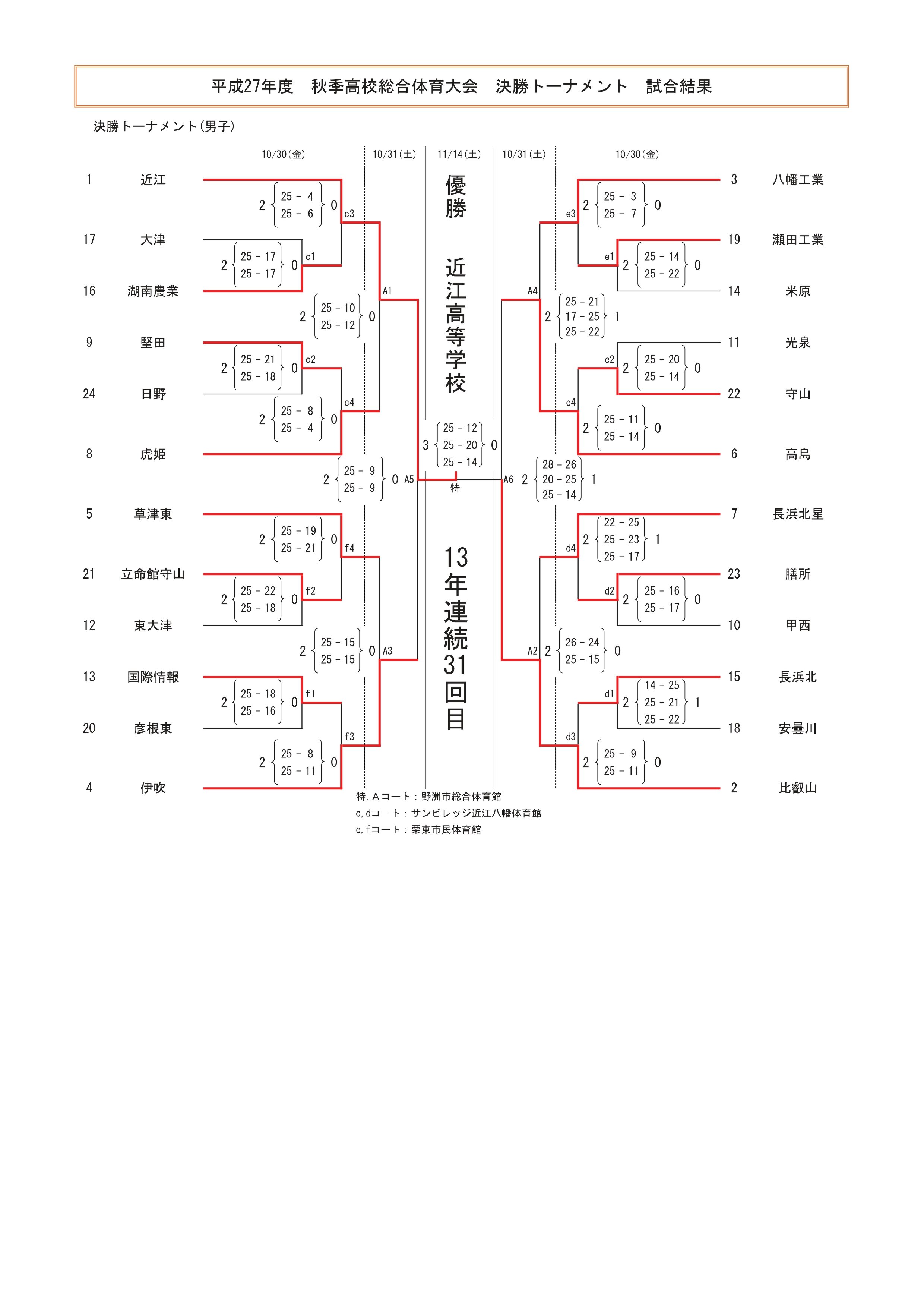平成27年度 滋賀県高等学校秋季総合体育大会 結果