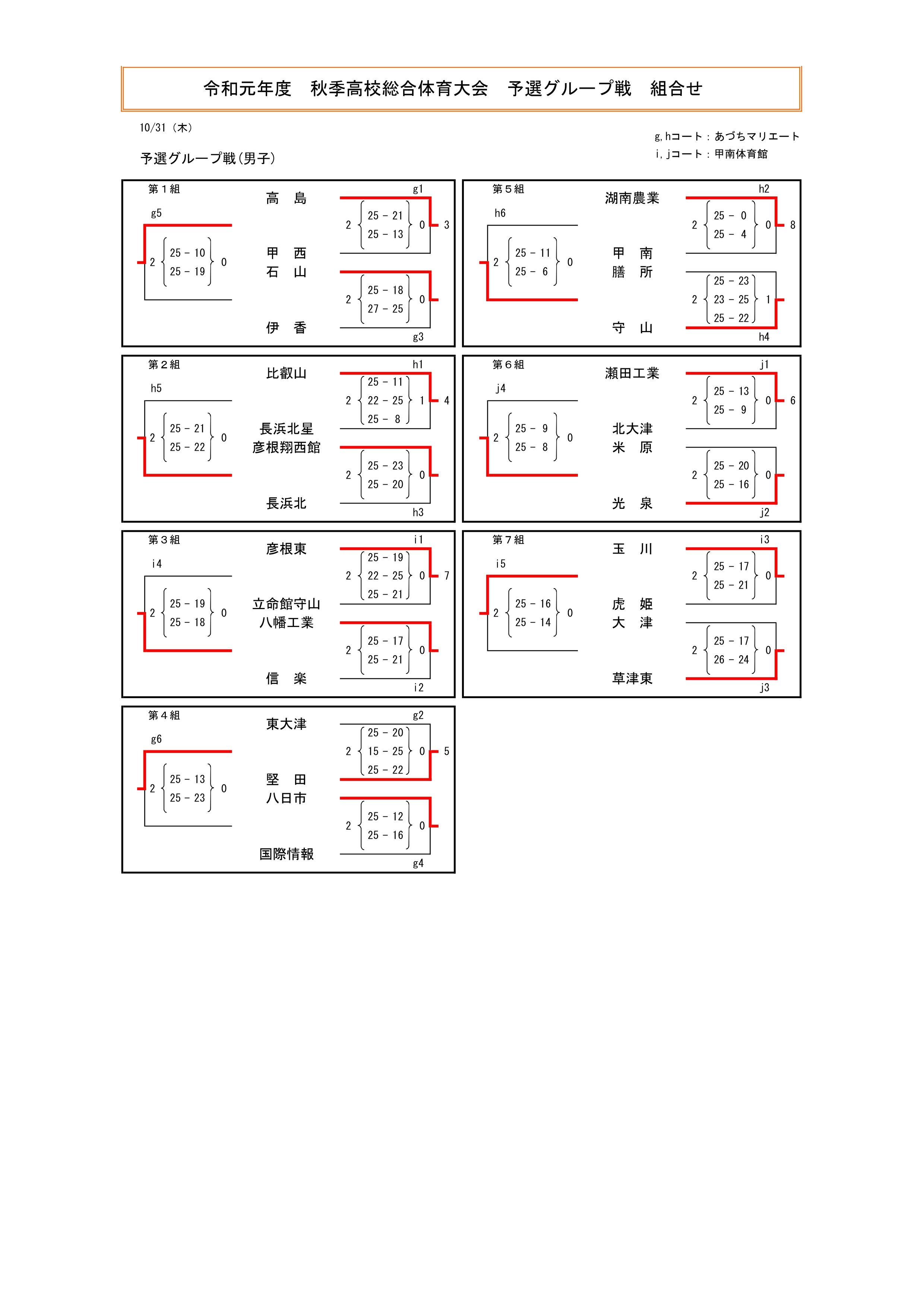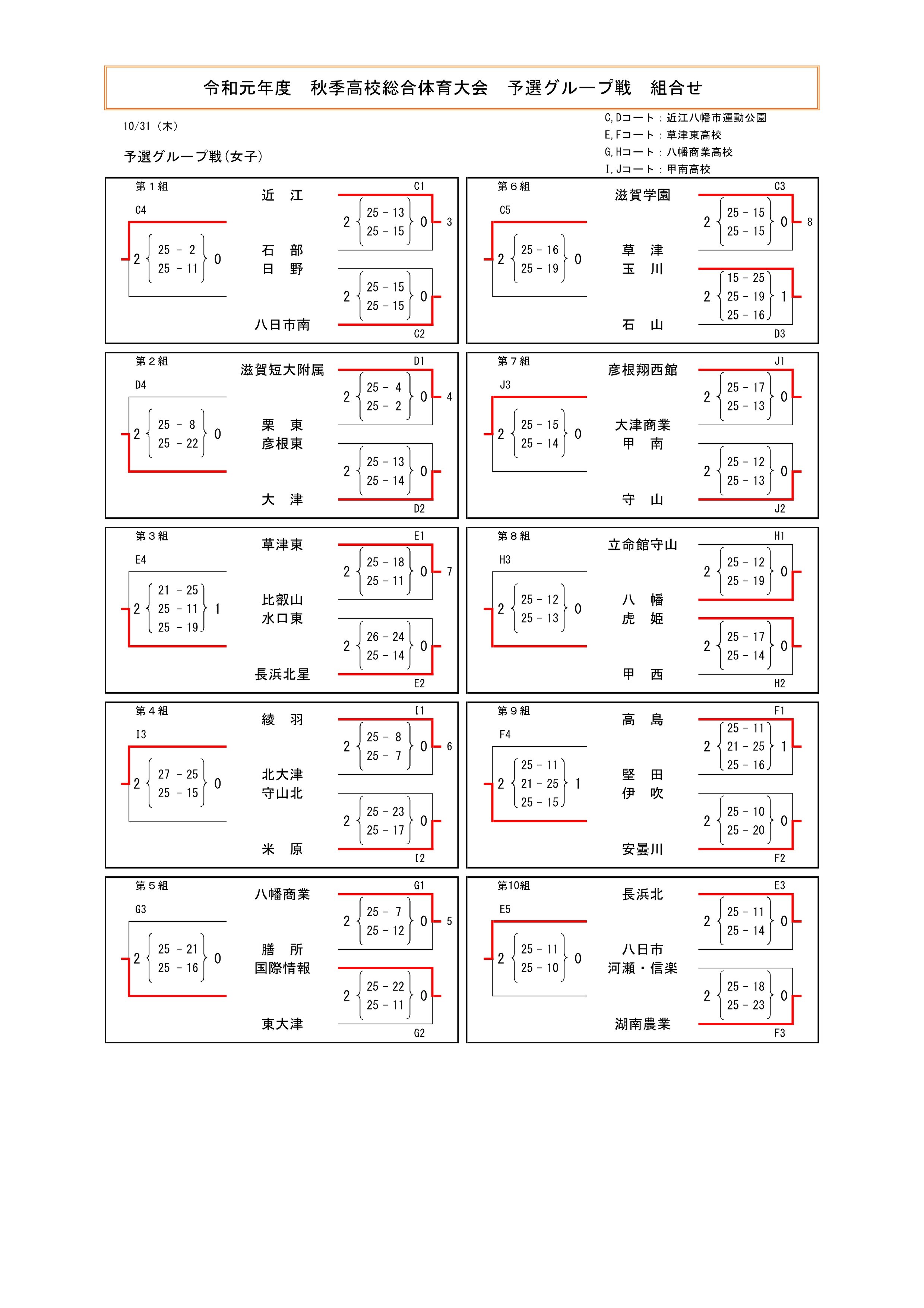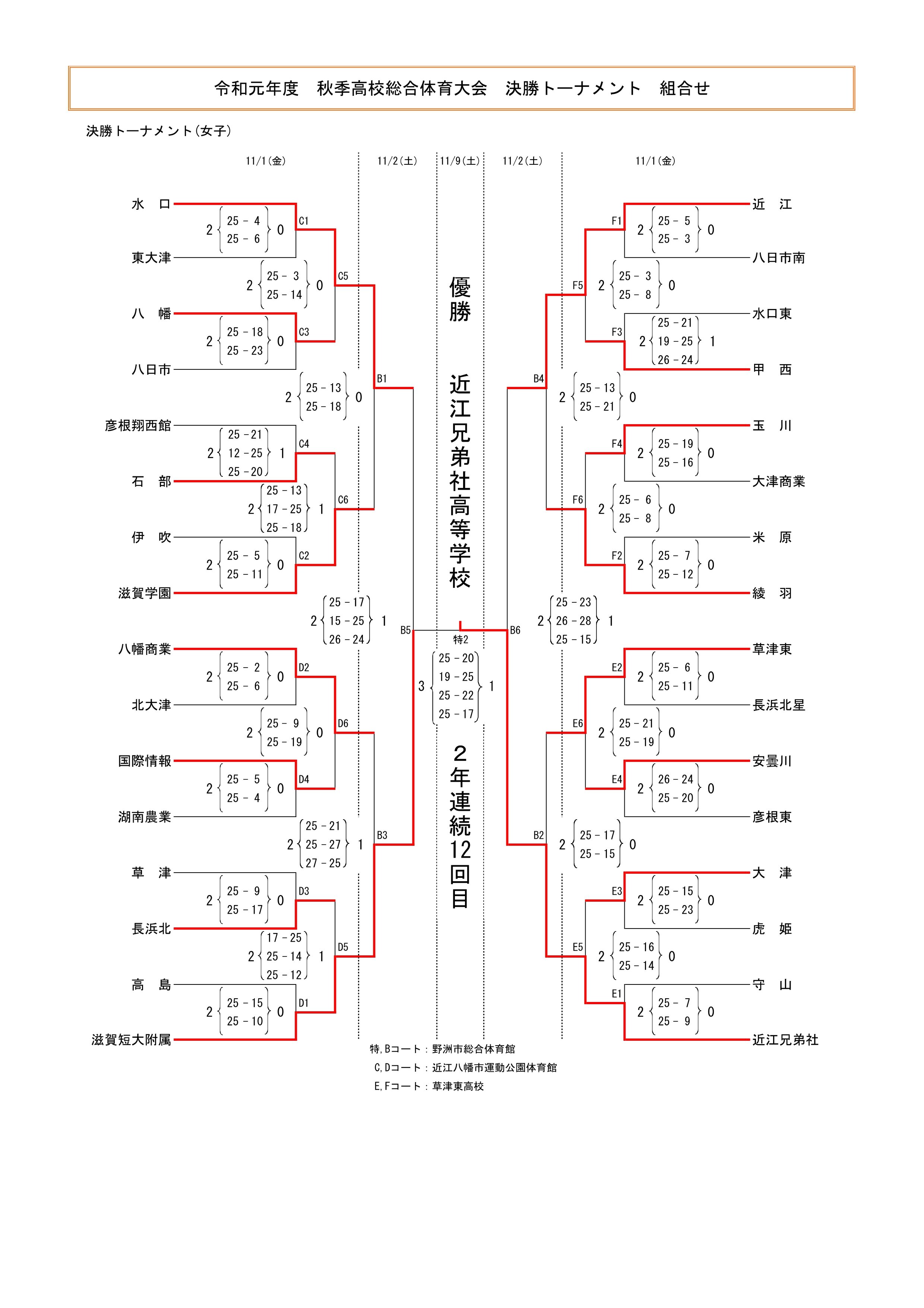 令和元年度 滋賀県高等学校秋季総合体育大会 結果