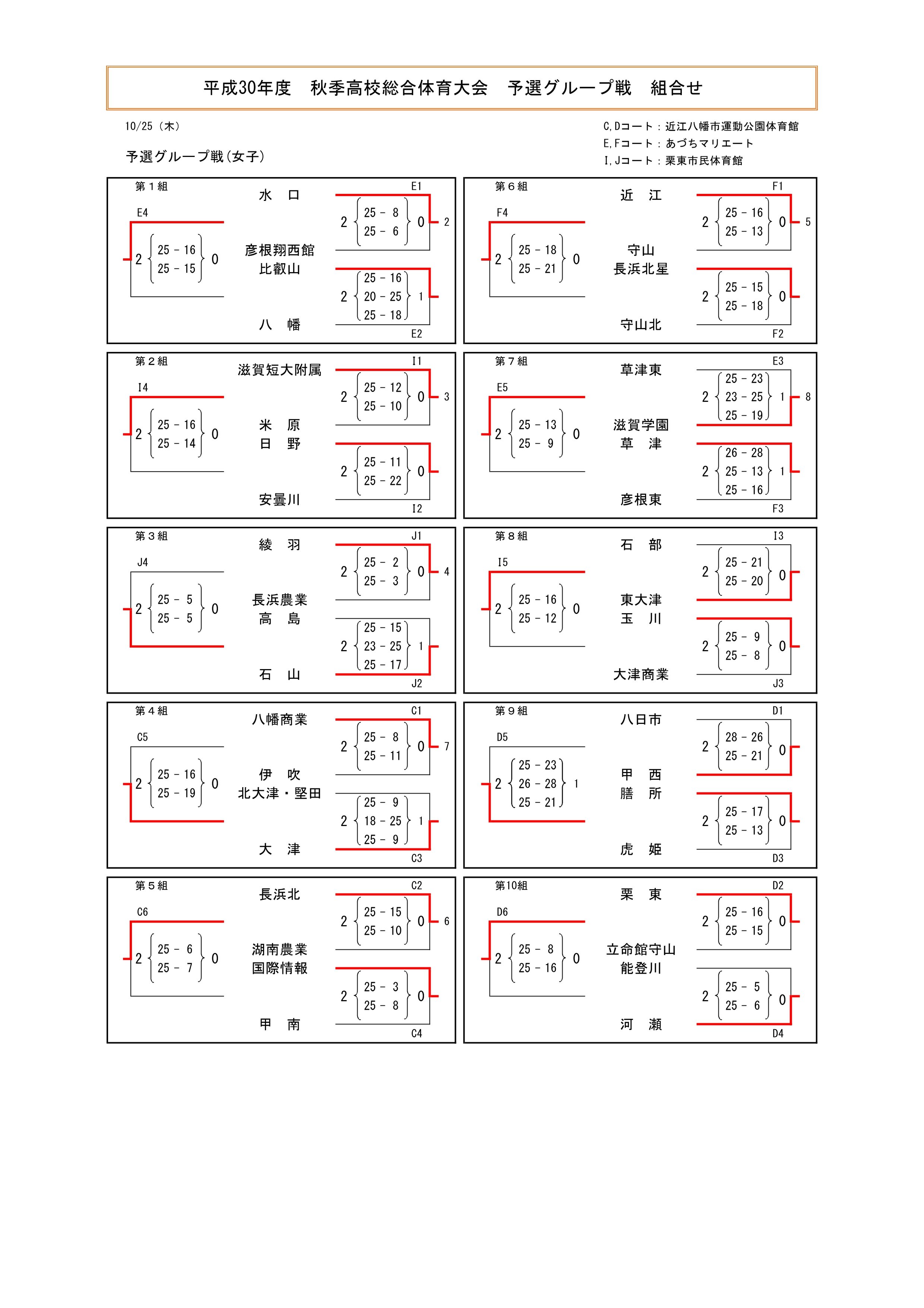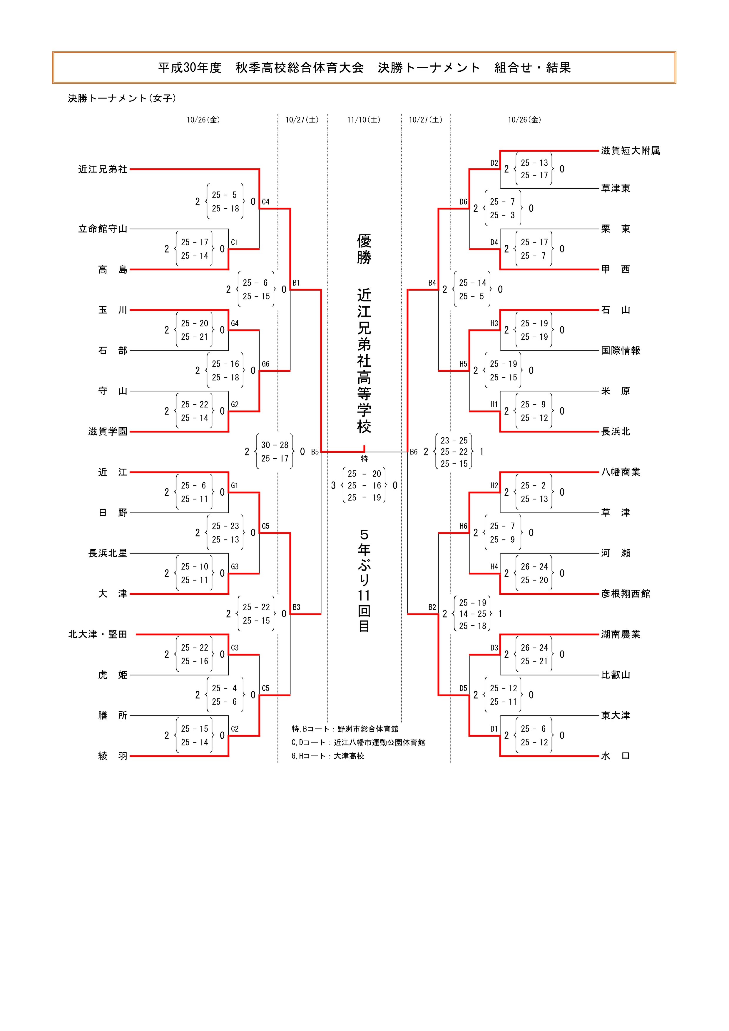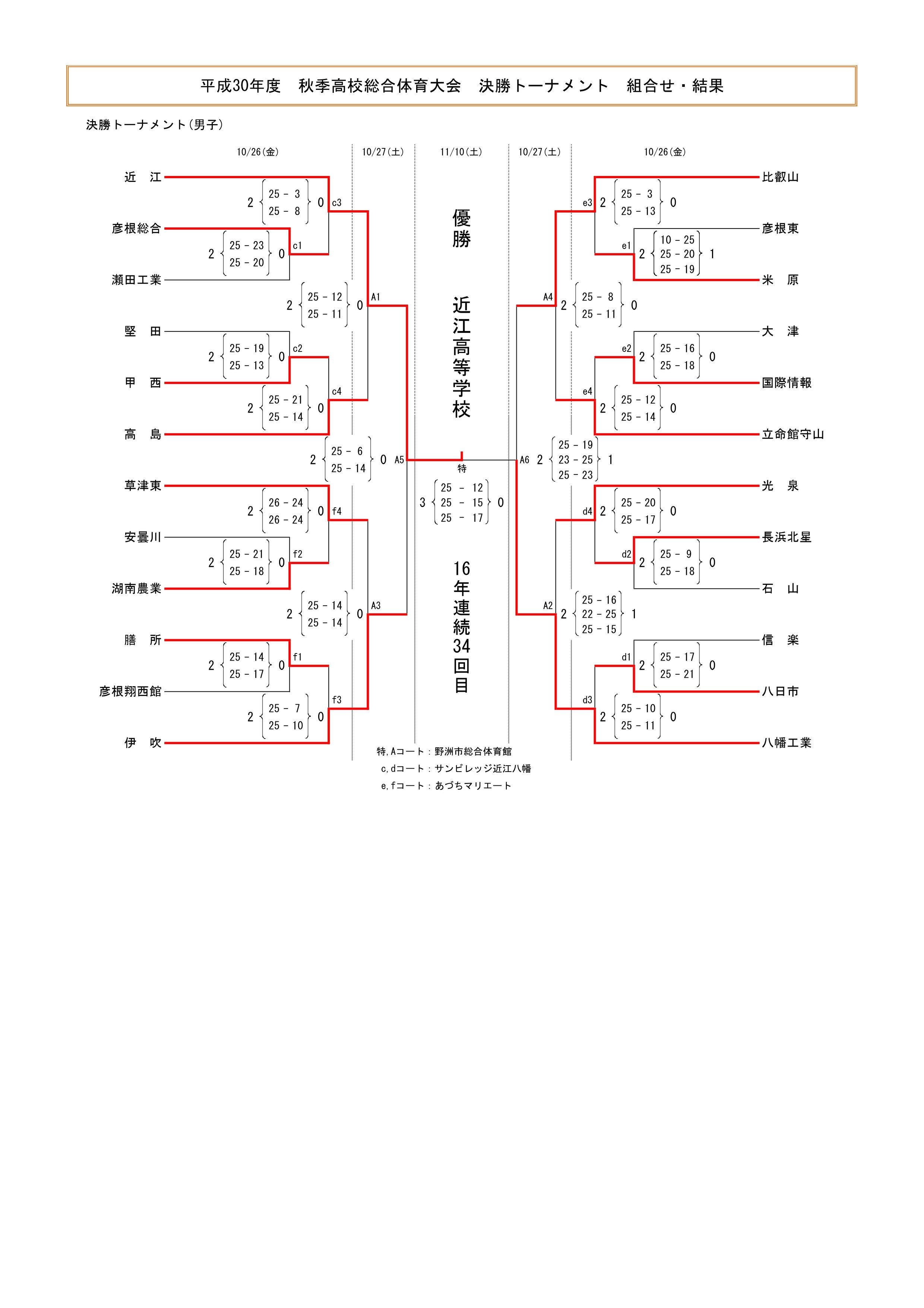 平成30年度 滋賀県高等学校秋季総合体育大会 結果